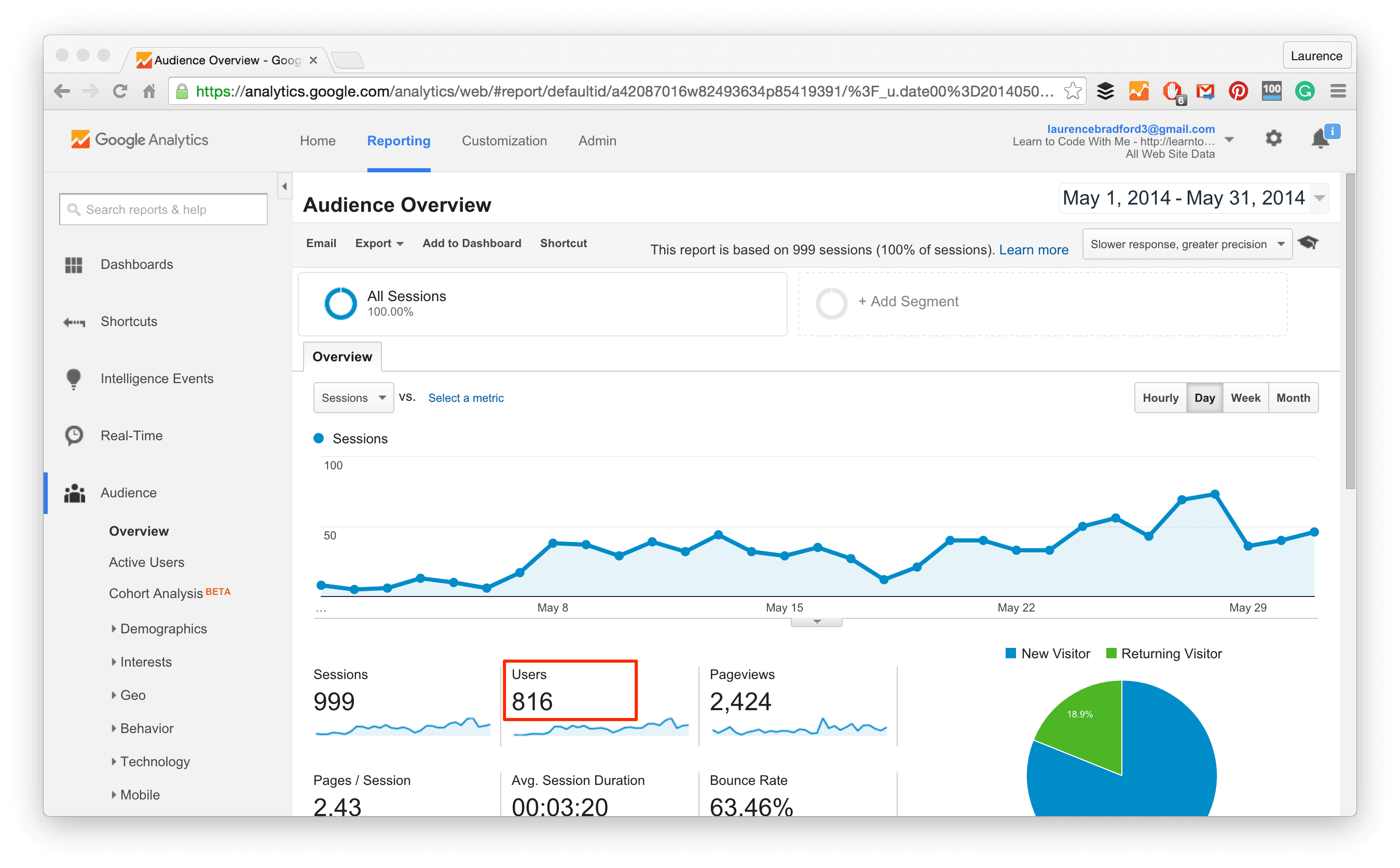 Setting up Google Analytics takes 10 minutes. It’s valuable because it paints a picture of your website’s traffic—where people are coming from, how long they stay on your site, which pages are viewed the most, plus a whole lot more.